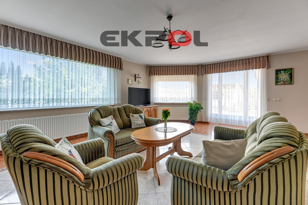 Na 200m2 kondygnacji parterowej znajduje się przestronny salon, kuchnia z jadalnią, 3 sypialnie oraz 2 łazienki i garderoba. Słoneczny taras o powierzchni ok. 70m2 z wyjściem z salonu i kuchni. Poddasze około 50m2, budynek podpiwniczony gdzie znajduje się biuro, pralnia, kotłownia oraz pomieszczenia gospodarcze. Garaż dwustanowiskowy o powierzchni około 38m2.