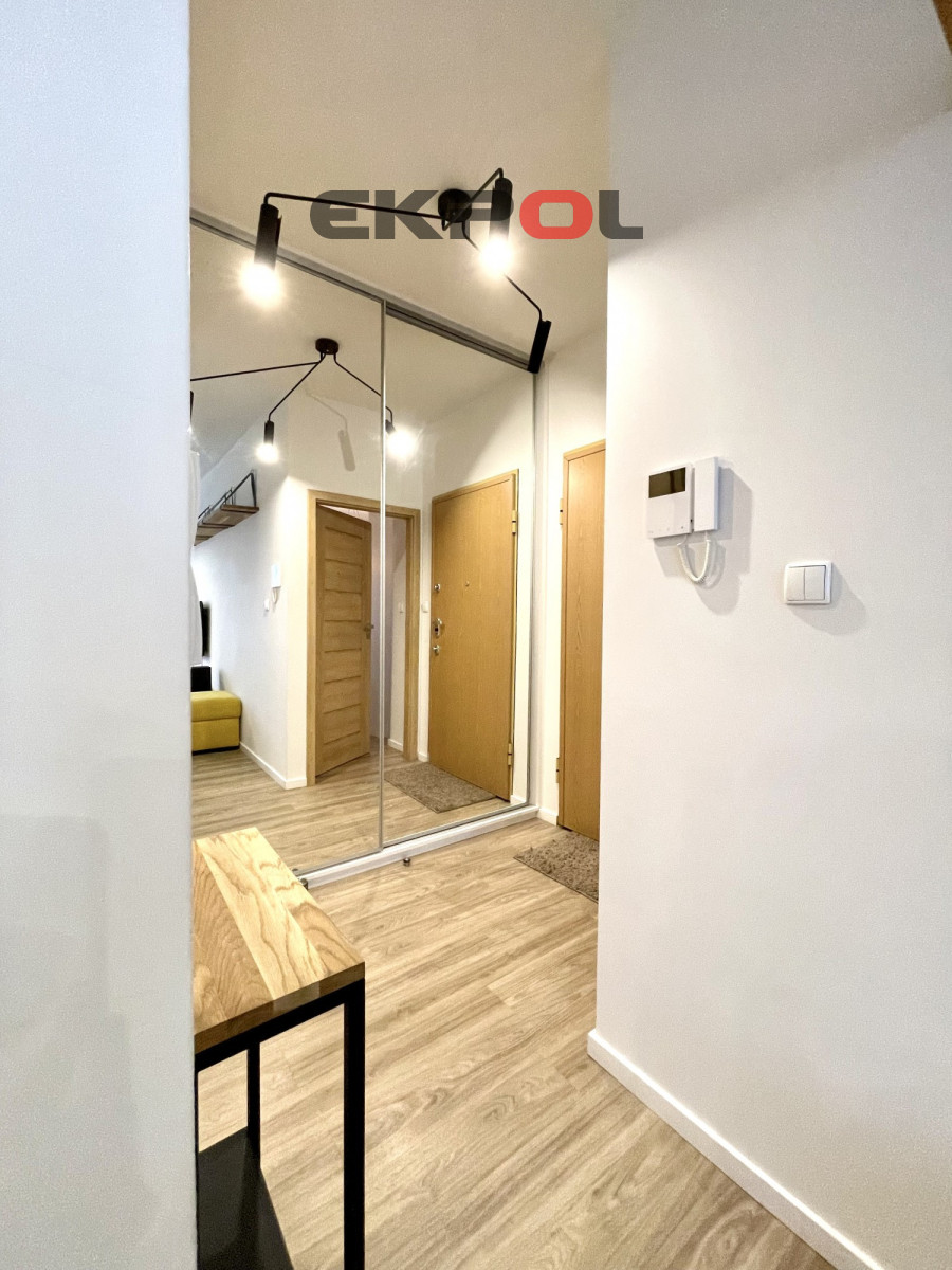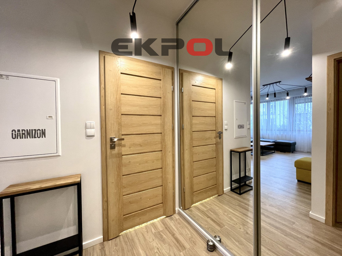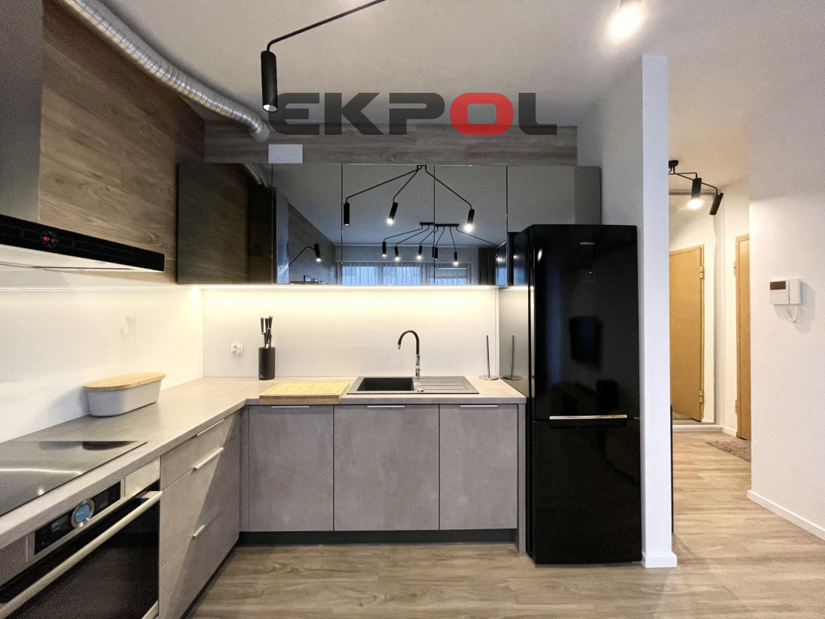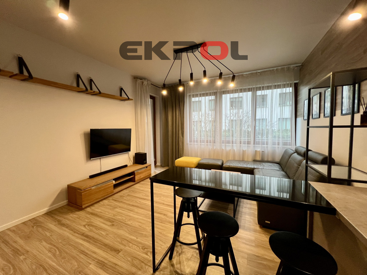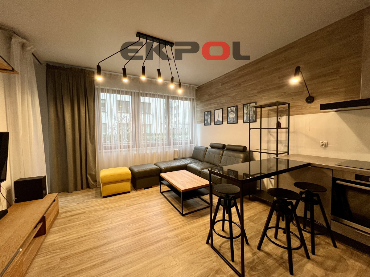 Na powierzchnię apartamentu składa się przestronny salon z aneksem kuchennym, sypialnia oraz łazienka z prysznicem. Z salonu wyjście na słoneczny taras. Mieszkanie w pełni umeblowane i wyposażone w wysokiej klasy sprzęt agd i rtv. Całość wykończona w bardzo wysokim standardzie z dbałością o każdy detal. Wejście do klatki jest schowane z widoku ulicy, która jest pieszym deptakiem, wychodzące na mały basen z fontanną i stolikami szachowymi. Budynek jest monitorowany, na terenie osiedla znajduje się ochrona całodobowa. Wejście na klatkę zabezpieczone videofonem. Budynek posiada windę. Do mieszkania przynależy komórka lokatorska oraz miejsce parkingowe w hali garażowej dodatkowo płatne (nie ma konieczności decydowania się na miejsce parkingowe). Przy garażu znajduje się rowerownia z bardzo dobrym dostępem. Najem długoterminowy. Prezentowana oferta ma charakter informacyjny, nie stanowi oferty handlowej w rozumieniu Art. 66 par. 1 Kodeksu Cywilnego.