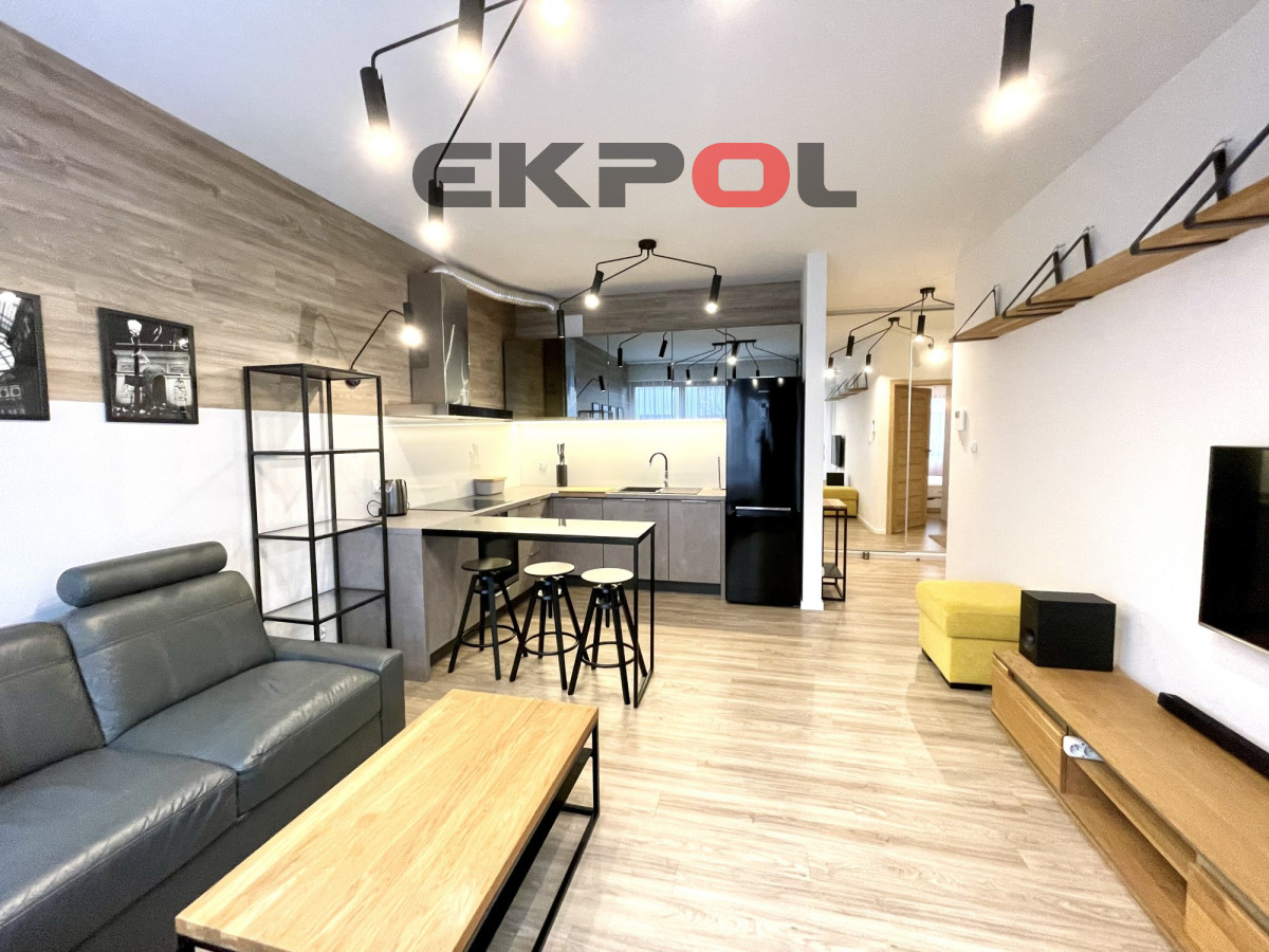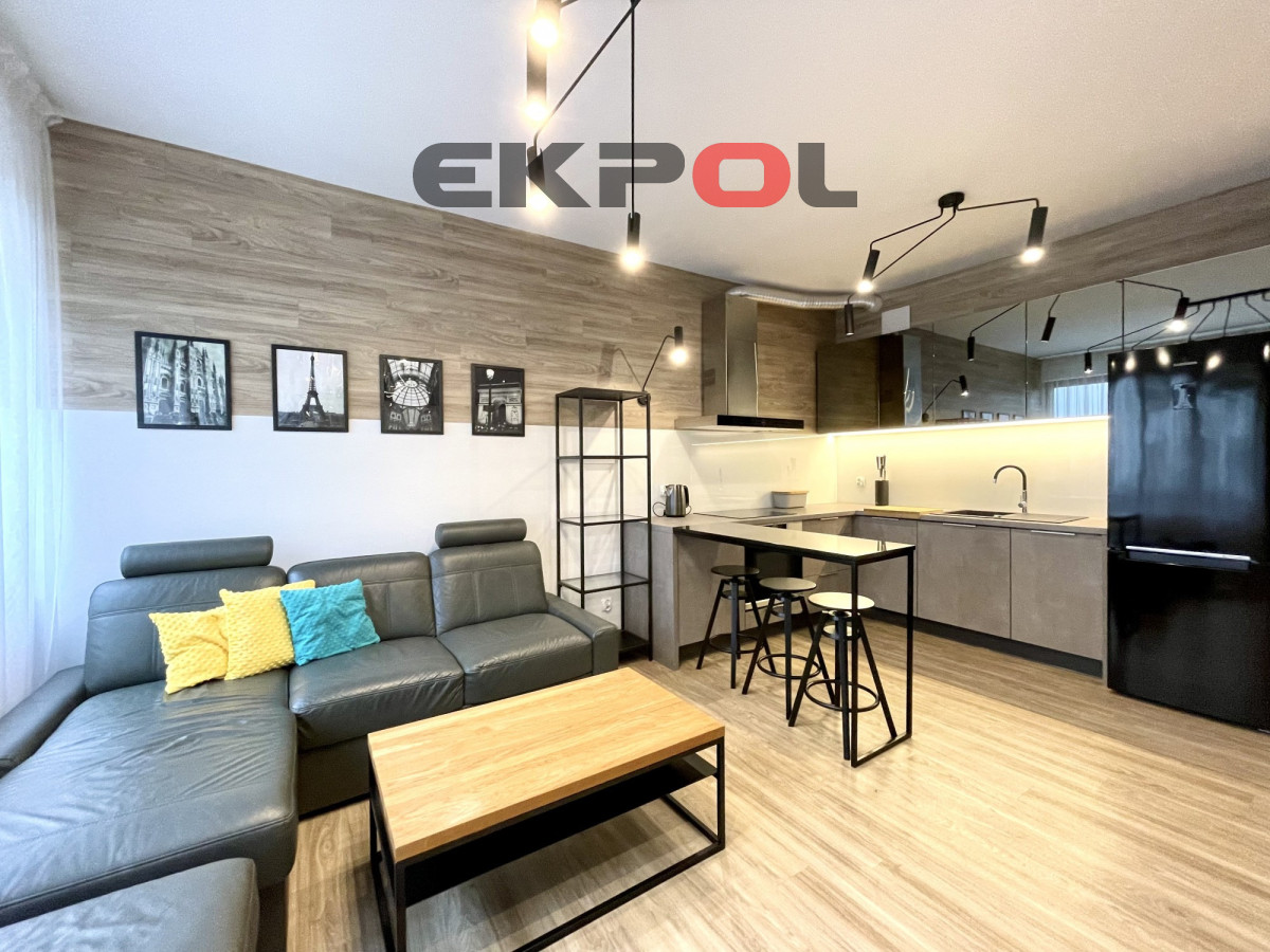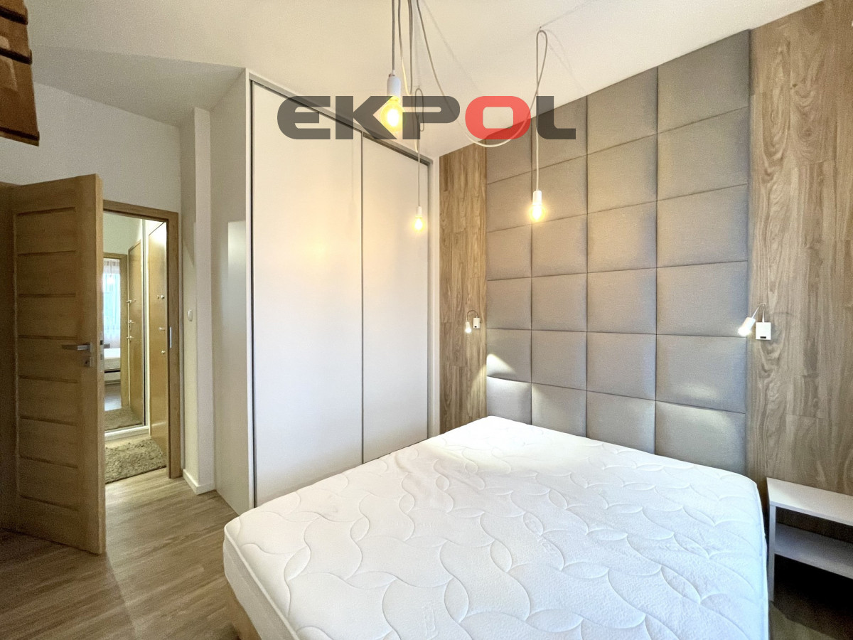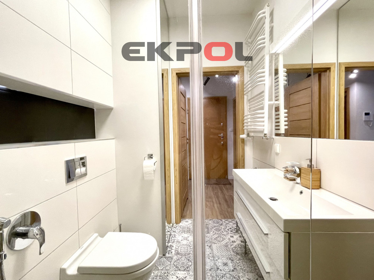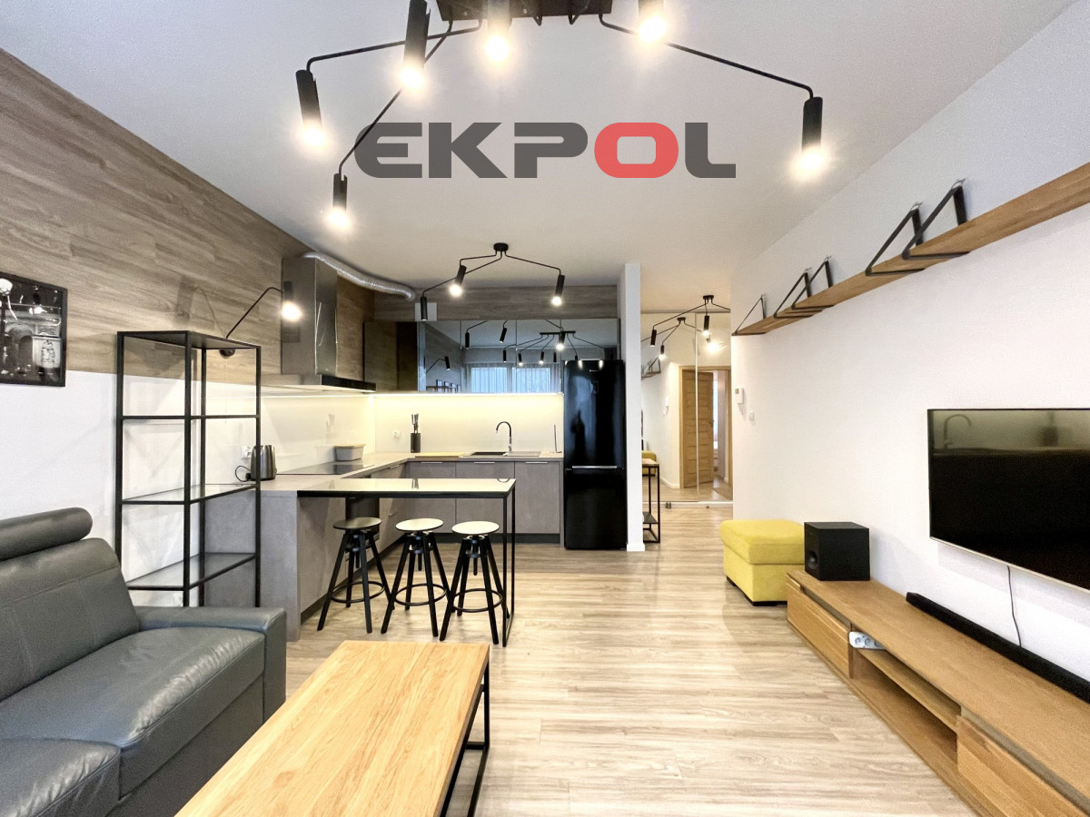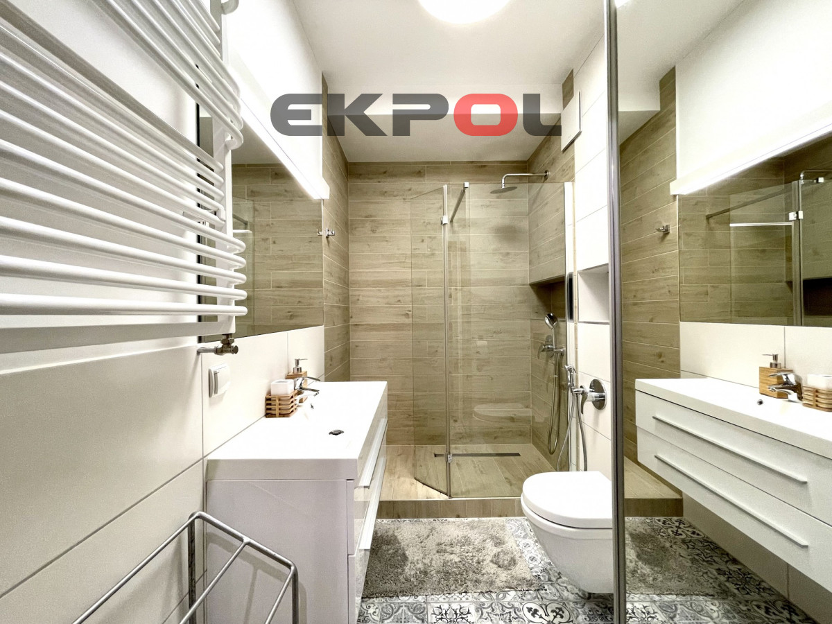 Na powierzchnię apartamentu składa się przestronny salon z aneksem kuchennym, sypialnia oraz łazienka z prysznicem. Z salonu wyjście na słoneczny taras. Mieszkanie w pełni umeblowane i wyposażone w wysokiej klasy sprzęt agd i rtv. Całość wykończona w bardzo wysokim standardzie z dbałością o każdy detal. Wejście do klatki jest schowane z widoku ulicy, która jest pieszym deptakiem, wychodzące na mały basen z fontanną i stolikami szachowymi. Budynek jest monitorowany, na terenie osiedla znajduje się ochrona całodobowa. Wejście na klatkę zabezpieczone videofonem. Budynek posiada windę. Do mieszkania przynależy komórka lokatorska oraz miejsce parkingowe w hali garażowej dodatkowo płatne (nie ma konieczności decydowania się na miejsce parkingowe). Przy garażu znajduje się rowerownia z bardzo dobrym dostępem. Najem długoterminowy. Prezentowana oferta ma charakter informacyjny, nie stanowi oferty handlowej w rozumieniu Art. 66 par. 1 Kodeksu Cywilnego.