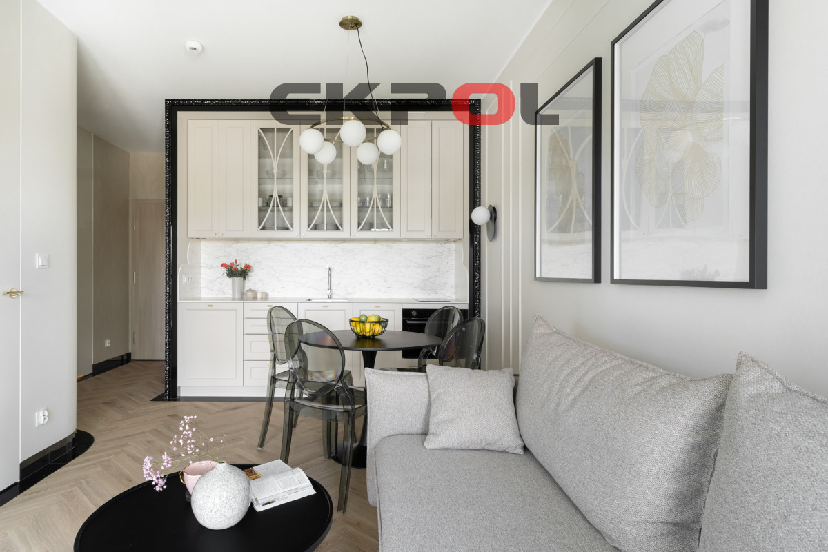 Apartament o powierzchni 36m2, na której znajduje się salon z aneksem kuchennym, sypialnia, łazienka z dużym prysznicem oraz garderoba/pomieszczenie gospodarcze. Apartament zaprojektowany przez architekta i wykończony w bardzo wysokim standardzie. W mieszkaniu zastosowano bardzo wysokiej jakości materiały, a wszelkie szczegóły dopasowano z wielką dbałością. Nieruchomość spełni oczekiwania najbardziej wymagającego klienta.
